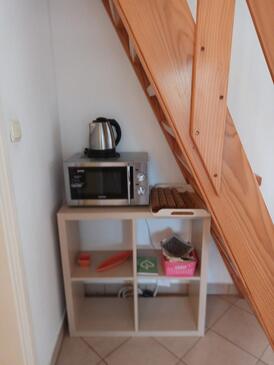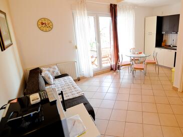 Ferienwohnung bietet Platz für 4 Gäste. Die Betten sind in Schlafzimmern, die es 1 gibt, und in Wohnzimmer, innerhalb einer Gesamtfläche von 34m2, angeordnet. Die Gäste haben eine eigene Terrasse zur Verfügung, auf der sie in warmen Sommernächten genießen können. Das Apartment bietet Meerblick. Es ist erlaubt, Speisen auf dem Gemeinschafts-Grill vorzubereiten. In der Unterkunftseinheit besteht die Möglichkeit des Mitbringens von Haustieren, und die Dienstleistung ist im Preis der Unterkunft enthalten.