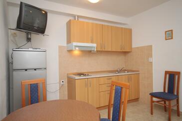 Ferienwohnung bietet Platz für 2 Gäste. Die Betten sind in Schlafzimmern, die es 1 gibt, innerhalb einer Gesamtfläche von 24m2, angeordnet. Die Gäste haben eine eigene Terrasse zur Verfügung, auf der sie in warmen Sommernächten genießen können. Das Apartment bietet Meerblick. Es ist erlaubt, Speisen auf dem Gemeinschafts-Grill vorzubereiten. In der Unterkunftseinheit besteht die Möglichkeit des Mitbringens von Haustieren gegen Aufpreis.