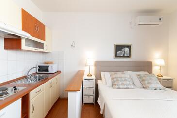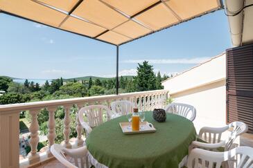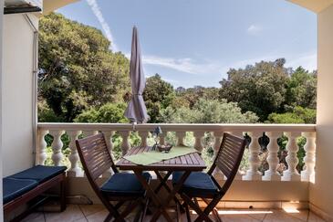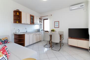 Ferienwohnung bietet Platz für 5 Gäste. Die Betten sind in Schlafzimmern, die es 2 gibt, und in Wohnzimmer, innerhalb einer Gesamtfläche von 49m2, angeordnet. Die Gäste haben eine eigene Terrasse zur Verfügung, auf der sie in warmen Sommernächten genießen können. Das Apartment bietet Meerblick. Es ist erlaubt, Speisen auf dem Gemeinschafts-Grill vorzubereiten.