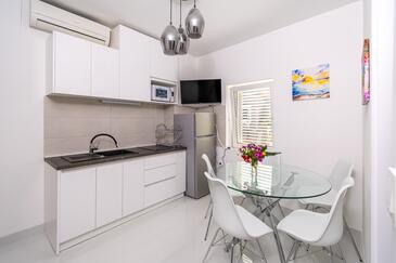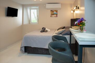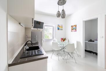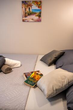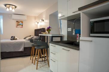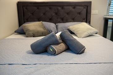 Ferienwohnung bietet Platz für 5 Gäste. Die Betten sind in Schlafzimmern, die es 2 gibt, innerhalb einer Gesamtfläche von 31m2, angeordnet. Das Apartment bietet Meerblick. Es ist erlaubt, Speisen auf dem Gemeinschafts-Grill vorzubereiten. Die reservierte Unterkunftseinheit verfügt über einen gemeinsame Terrasse.