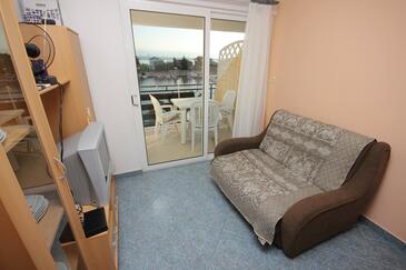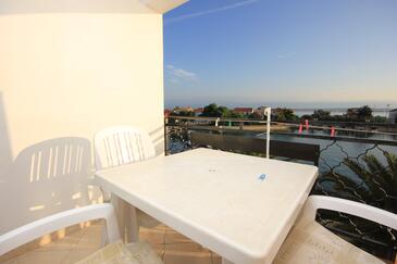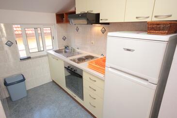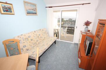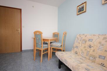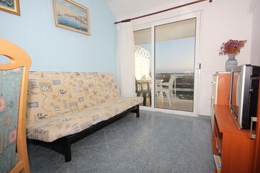 Ferienwohnung bietet Platz für 5 Gäste. Die Betten sind in Schlafzimmern, die es 2 gibt, innerhalb einer Gesamtfläche von 52m2, angeordnet. Die Gäste haben eine eigene Terrasse zur Verfügung, auf der sie in warmen Sommernächten genießen können. Das Apartment bietet Meerblick. Es ist erlaubt, Speisen auf dem Gemeinschafts-Grill vorzubereiten.