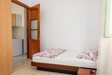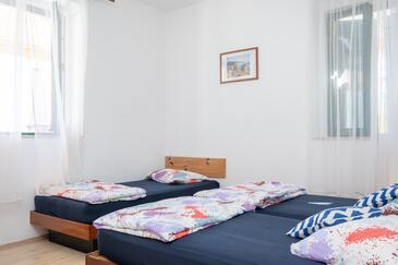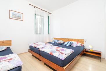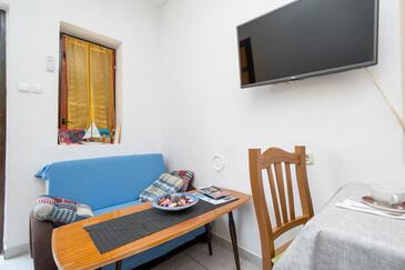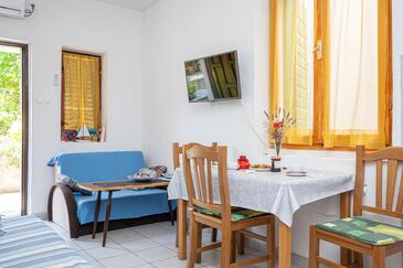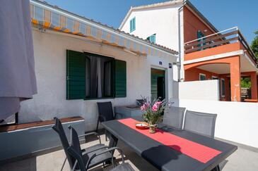 Haus bietet Platz für 6 Gäste. Die Betten sind in Schlafzimmern, die es 2 gibt, innerhalb einer Gesamtfläche von 73m2, angeordnet. Die Gäste haben eine eigene Terrasse zur Verfügung, auf der sie in warmen Sommernächten genießen können. Das Haus bietet Meerblick. Es ist erlaubt, Speisen auf dem Gemeinschafts-Grill vorzubereiten.