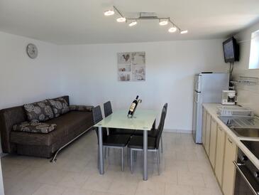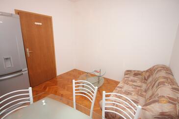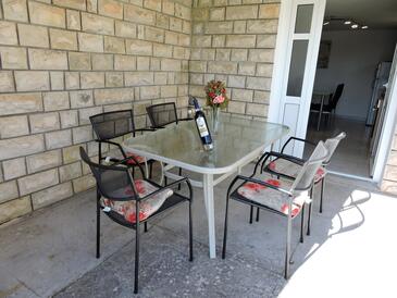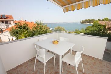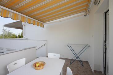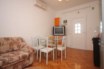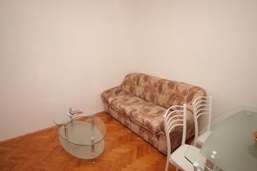 Ferienwohnung bietet Platz für 6 Gäste. Die Betten sind in Schlafzimmern, die es 2 gibt, und in Wohnzimmer, innerhalb einer Gesamtfläche von 59m2, angeordnet. Die Gäste haben eine eigene Terrasse zur Verfügung, auf der sie in warmen Sommernächten genießen können. Das Apartment bietet Meerblick. Es ist erlaubt, Speisen auf dem Gemeinschafts-Grill vorzubereiten.
