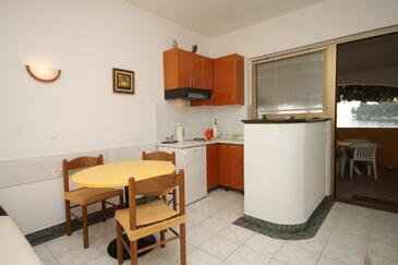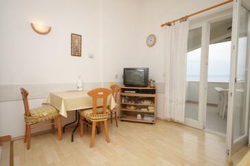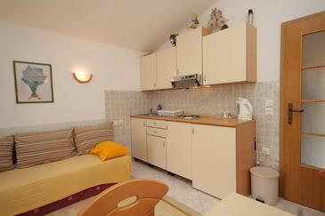 Ferienwohnung bietet Platz für 3 Gäste. Die Betten sind in Schlafzimmern, die es 1 gibt, und in Wohnzimmer, innerhalb einer Gesamtfläche von 29m2, angeordnet. Die Gäste haben eine eigene Terrasse zur Verfügung, auf der sie in warmen Sommernächten genießen können. Das Apartment bietet Meerblick. Es ist erlaubt, Speisen auf dem Gemeinschafts-Grill vorzubereiten.
