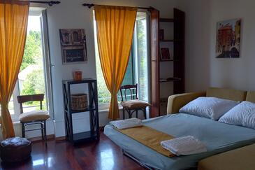 Ferienwohnung bietet Platz für 4 Gäste. Die Betten sind in Schlafzimmern, die es 1 gibt, und in Wohnzimmer, innerhalb einer Gesamtfläche von 56m2, angeordnet. Die Gäste haben eine eigene Terrasse zur Verfügung, auf der sie in warmen Sommernächten genießen können. Es ist erlaubt, Speisen auf dem Gemeinschafts-Grill vorzubereiten. In der Unterkunftseinheit besteht die Möglichkeit des Mitbringens von Haustieren gegen Aufpreis.