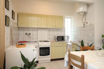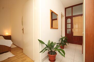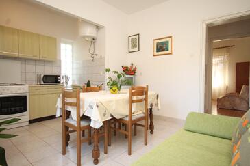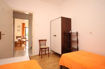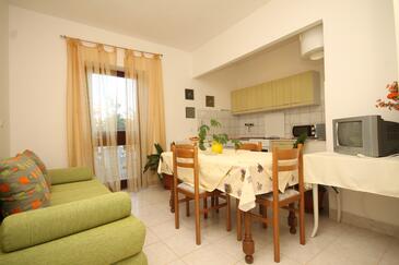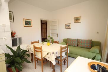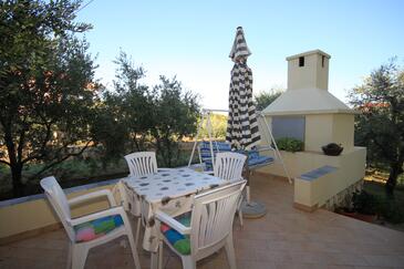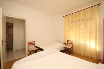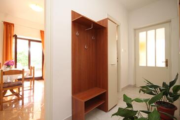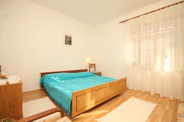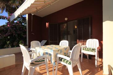 Ferienwohnung bietet Platz für 5 Gäste. Die Betten sind in Schlafzimmern, die es 2 gibt, innerhalb einer Gesamtfläche von 41m2, angeordnet. Die Gäste haben eine eigene Terrasse zur Verfügung, auf der sie in warmen Sommernächten genießen können. Es ist erlaubt, Speisen auf dem Gemeinschafts-Grill vorzubereiten.