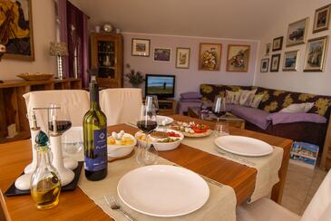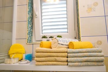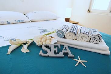 Ferienwohnung bietet Platz für 4 Gäste. Die Betten sind in Schlafzimmern, die es 2 gibt, innerhalb einer Gesamtfläche von 66m2, angeordnet. Die Gäste haben eine eigene Terrasse zur Verfügung, auf der sie in warmen Sommernächten genießen können. Das Apartment bietet Meerblick. Es ist erlaubt, Speisen auf dem Gemeinschafts-Grill vorzubereiten.