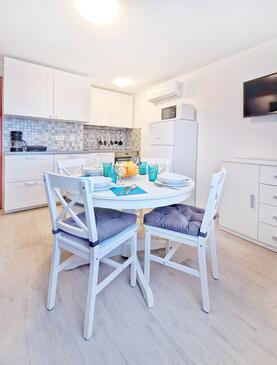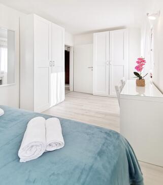 Ferienwohnung bietet Platz für 6 Gäste. Die Betten sind in Schlafzimmern, die es 3 gibt, innerhalb einer Gesamtfläche von 62m2, angeordnet. Die Gäste haben eine eigene Terrasse zur Verfügung, auf der sie in warmen Sommernächten genießen können. Es ist erlaubt, Speisen auf dem Gemeinschafts-Grill vorzubereiten.