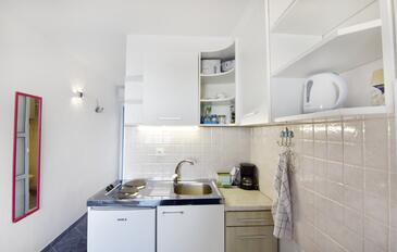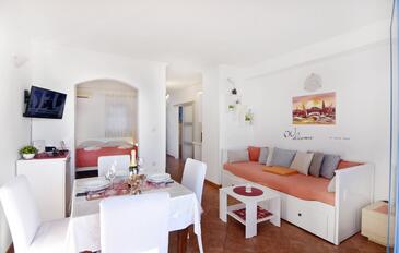 Ferienwohnung bietet Platz für 3 Gäste. Die Betten sind in Schlafzimmern, die es 1 gibt, und in Wohnzimmer, innerhalb einer Gesamtfläche von 31m2, angeordnet. Die Gäste haben eine eigene Terrasse zur Verfügung, auf der sie in warmen Sommernächten genießen können. Das Apartment bietet Meerblick. Es ist erlaubt, Speisen auf dem Gemeinschafts-Grill vorzubereiten.