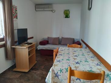Ferienwohnung bietet Platz für 3 Gäste. Die Betten sind in Schlafzimmern, die es 1 gibt, innerhalb einer Gesamtfläche von 31m2, angeordnet. Die Gäste haben eine eigene Terrasse zur Verfügung, auf der sie in warmen Sommernächten genießen können. Das Apartment bietet Meerblick. Es ist erlaubt, Speisen auf dem Gemeinschafts-Grill vorzubereiten. In der Unterkunftseinheit besteht die Möglichkeit des Mitbringens von Haustieren, und die Dienstleistung ist im Preis der Unterkunft enthalten.