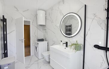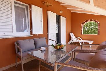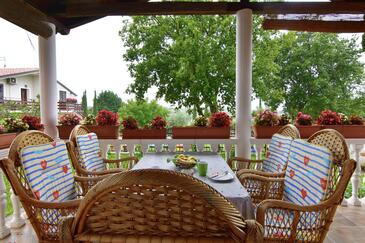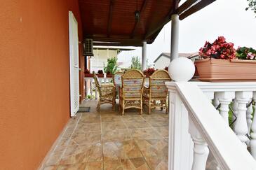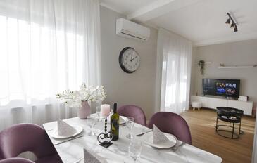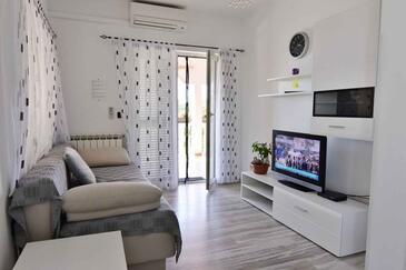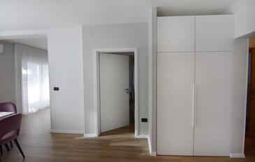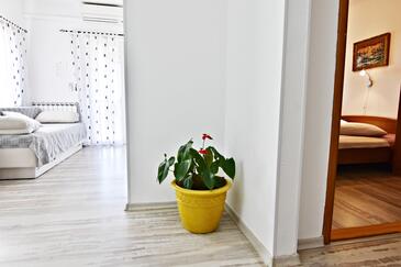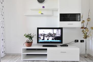 Ferienwohnung bietet Platz für 6 Gäste. Die Betten sind in Schlafzimmern, die es 2 gibt, und in Wohnzimmer, innerhalb einer Gesamtfläche von 68m2, angeordnet. Die Gäste haben eine eigene Terrasse zur Verfügung, auf der sie in warmen Sommernächten genießen können. Es ist erlaubt, Speisen auf dem Gemeinschafts-Grill vorzubereiten.