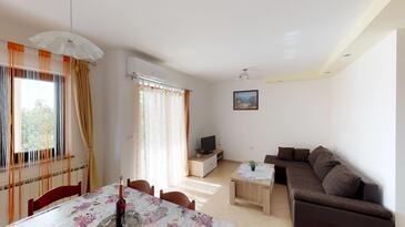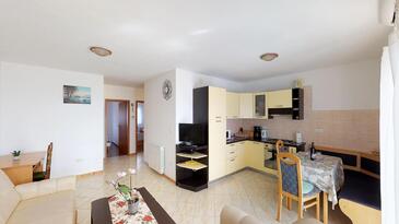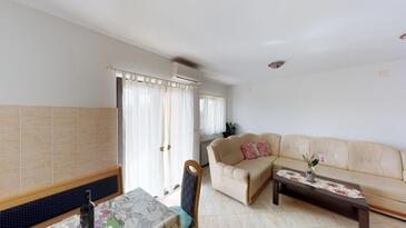 Ferienwohnung bietet Platz für 6 Gäste. Die Betten sind in Schlafzimmern, die es 2 gibt, und in Wohnzimmer, innerhalb einer Gesamtfläche von 55m2, angeordnet. Die Gäste haben eine eigene Terrasse zur Verfügung, auf der sie in warmen Sommernächten genießen können. Es ist erlaubt, Speisen auf dem Gemeinschafts-Grill vorzubereiten.