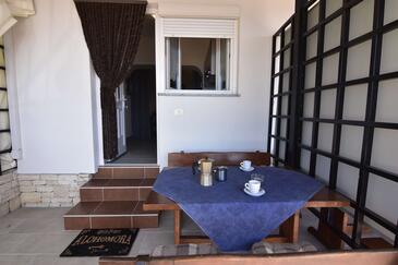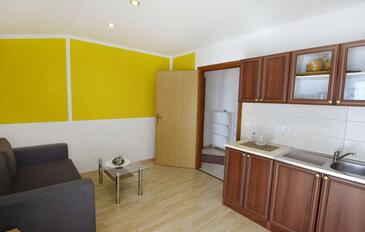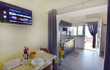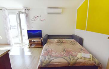 Ferienwohnung bietet Platz für 5 Gäste. Die Betten sind in Schlafzimmern, die es 2 gibt, und in Esszimmer, innerhalb einer Gesamtfläche von 57m2, angeordnet. Die Gäste haben einen eigenen Balkon zur Verfügung, auf der sie in warmen Sommernächten genießen können. Das Apartment bietet Meerblick. Es ist erlaubt, Speisen auf dem Gemeinschafts-Grill vorzubereiten.