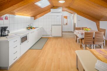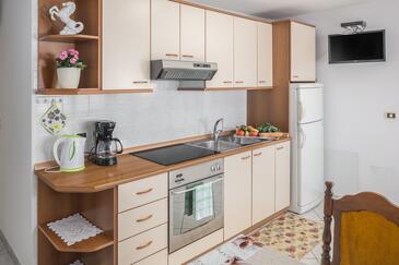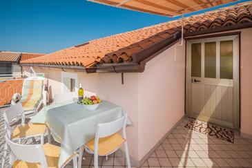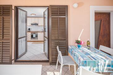 Ferienwohnung bietet Platz für 4 Gäste. Die Betten sind in Schlafzimmern, die es 2 gibt, innerhalb einer Gesamtfläche von 43m2, angeordnet. Die Gäste haben eine eigene Terrasse zur Verfügung, auf der sie in warmen Sommernächten genießen können. Das Apartment bietet Meerblick. In der Unterkunftseinheit besteht die Möglichkeit des Mitbringens von Haustieren gegen Aufpreis. Durch die Terrasse der gebuchten Unterkunftseinheit gehen auch andere Gäste oder Vermieter.