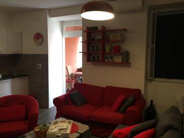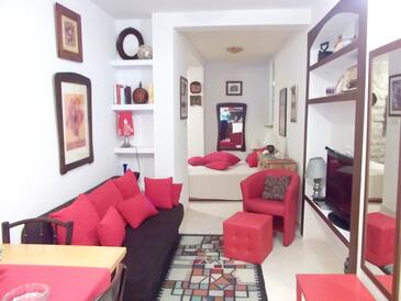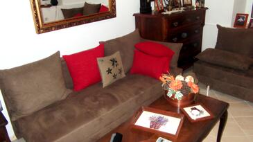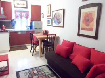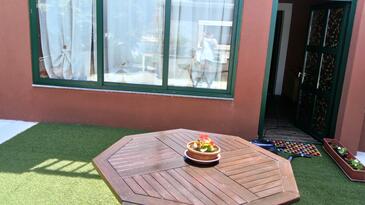 Ferienwohnung bietet Platz für 4 Gäste. Die Betten sind in Schlafzimmern, die es 2 gibt, innerhalb einer Gesamtfläche von 58m2, angeordnet. Die Gäste haben eine eigene Terrasse zur Verfügung, auf der sie in warmen Sommernächten genießen können. Das Apartment bietet Meerblick. Es ist erlaubt, Speisen auf dem Gemeinschafts-Grill vorzubereiten. In der Unterkunftseinheit besteht die Möglichkeit des Mitbringens von Haustieren gegen Aufpreis.