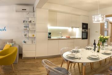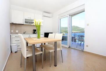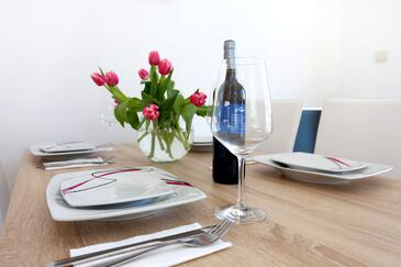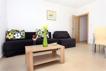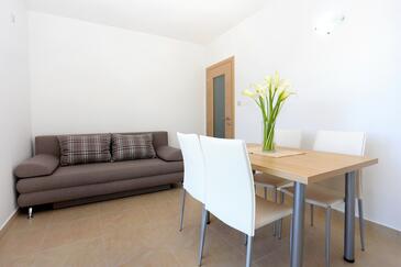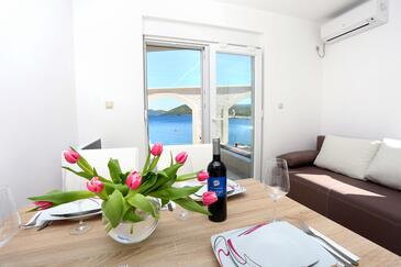 Ferienwohnung bietet Platz für 5 Gäste. Die Betten sind in Schlafzimmern, die es 1 gibt, und in Wohnzimmer, innerhalb einer Gesamtfläche von 39m2, angeordnet. Die Gäste haben eine eigene Terrasse zur Verfügung, auf der sie in warmen Sommernächten genießen können. Das Apartment bietet Meerblick.