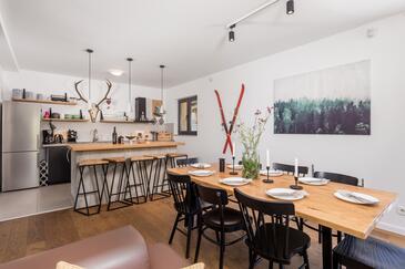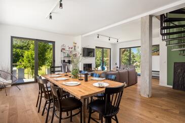 Haus bietet Platz für 8 Gäste. Die Betten sind in Schlafzimmern, die es 4 gibt, innerhalb einer Gesamtfläche von 121m2, angeordnet. Die Gäste haben eine eigene Terrasse zur Verfügung, auf der sie in warmen Sommernächten genießen können. Für vollen Genuss und Entspannung gibt es einen privaten Grill für Gäste dieser Unterkunft.