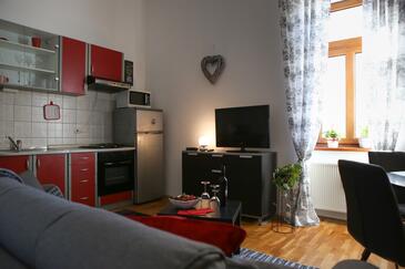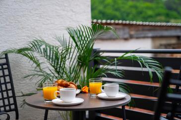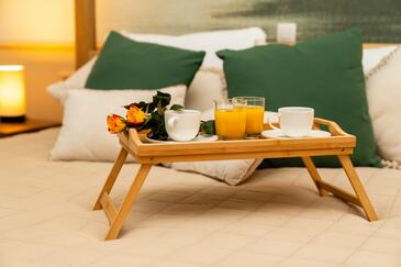 Ferienwohnung bietet Platz für 4 Gäste. Die Betten sind in Schlafzimmern, die es 1 gibt, und in Wohnzimmer, innerhalb einer Gesamtfläche von 51m2, angeordnet. Die Gäste haben eine eigene Terrasse zur Verfügung, auf der sie in warmen Sommernächten genießen können. Es ist erlaubt, Speisen auf dem Gemeinschafts-Grill vorzubereiten.