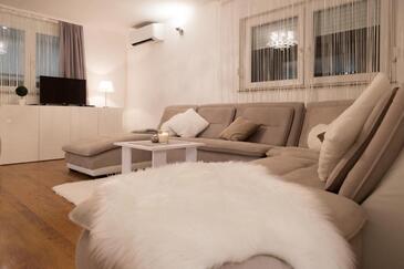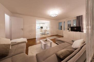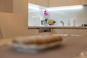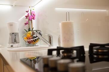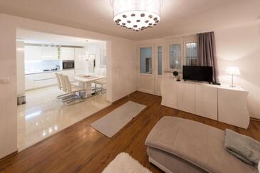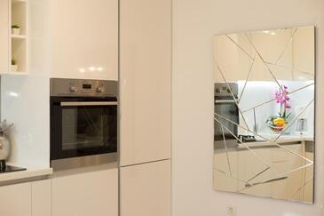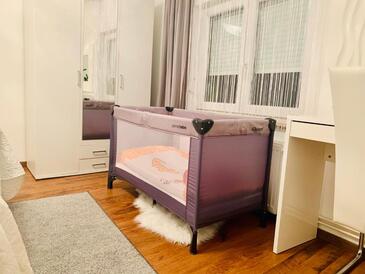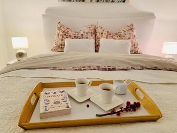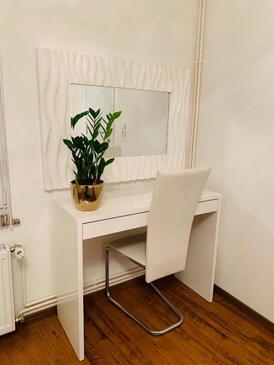 Ferienwohnung bietet Platz für 5 Gäste. Die Betten sind in Schlafzimmern, die es 2 gibt, und in Wohnzimmer, innerhalb einer Gesamtfläche von 83m2, angeordnet. Die Gäste haben eine eigene Terrasse zur Verfügung, auf der sie in warmen Sommernächten genießen können. Es ist erlaubt, Speisen auf dem Gemeinschafts-Grill vorzubereiten.