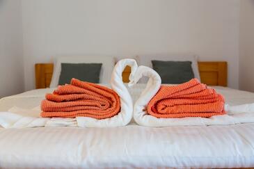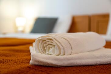 Haus bietet Platz für 5 Gäste. Die Betten sind in Schlafzimmern, die es 2 gibt, innerhalb einer Gesamtfläche von 52m2, angeordnet. Die Gäste haben einen eigenen Balkon zur Verfügung, auf der sie in warmen Sommernächten genießen können. Für vollen Genuss und Entspannung gibt es einen privaten Grill für Gäste dieser Unterkunft. In der Unterkunftseinheit besteht die Möglichkeit des Mitbringens von Haustieren gegen Aufpreis.