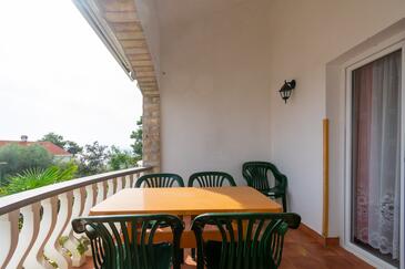 Ferienwohnung bietet Platz für 5 Gäste. Die Betten sind in Schlafzimmern, die es 2 gibt, und in Esszimmer, innerhalb einer Gesamtfläche von 54m2, angeordnet. Die Gäste haben einen eigenen Balkon zur Verfügung, auf der sie in warmen Sommernächten genießen können. Das Apartment bietet Meerblick. Es ist erlaubt, Speisen auf dem Gemeinschafts-Grill vorzubereiten.