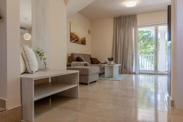 Ferienwohnung bietet Platz für 4 Gäste. Die Betten sind in Schlafzimmern, die es 2 gibt, innerhalb einer Gesamtfläche von 51m2, angeordnet. Die Gäste haben einen eigenen Balkon zur Verfügung, auf der sie in warmen Sommernächten genießen können. Das Apartment bietet Meerblick. Es ist erlaubt, Speisen auf dem Gemeinschafts-Grill vorzubereiten.