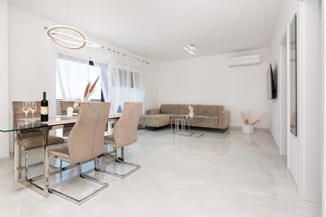 Ferienwohnung bietet Platz für 5 Gäste. Die Betten sind in Schlafzimmern, die es 2 gibt, und in Wohnzimmer, innerhalb einer Gesamtfläche von 68m2, angeordnet. Die Gäste haben eine eigene Terrasse zur Verfügung, auf der sie in warmen Sommernächten genießen können. Das Apartment bietet Meerblick. Es ist erlaubt, Speisen auf dem Gemeinschafts-Grill vorzubereiten.