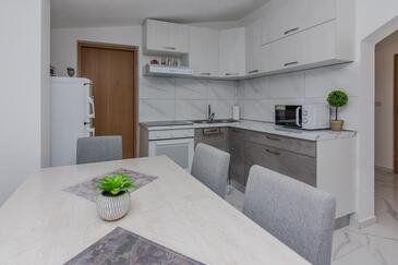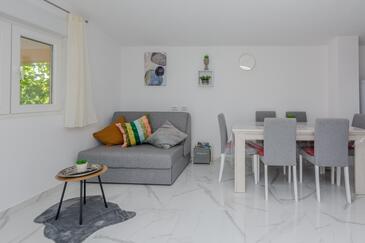 Ferienwohnung bietet Platz für 6 Gäste. Die Betten sind in Schlafzimmern, die es 3 gibt, innerhalb einer Gesamtfläche von 49m2, angeordnet. Die Gäste haben eine eigene Terrasse zur Verfügung, auf der sie in warmen Sommernächten genießen können. Es ist erlaubt, Speisen auf dem Gemeinschafts-Grill vorzubereiten.