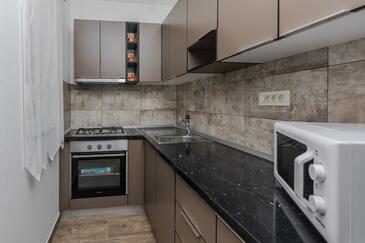 Ferienwohnung bietet Platz für 2 Gäste. Die Betten sind in Schlafzimmern, die es 1 gibt, innerhalb einer Gesamtfläche von 45m2, angeordnet. Die Gäste haben eine eigene Terrasse zur Verfügung, auf der sie in warmen Sommernächten genießen können.