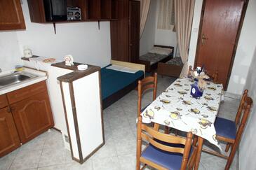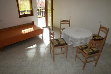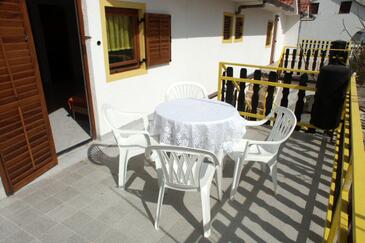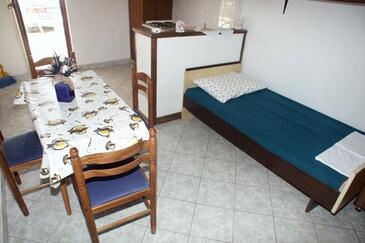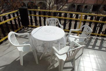 Ferienwohnung bietet Platz für 6 Gäste. Die Betten sind in Schlafzimmern, die es 2 gibt, und in Esszimmer, innerhalb einer Gesamtfläche von 38m2, angeordnet. Die Gäste haben eine eigene Terrasse zur Verfügung, auf der sie in warmen Sommernächten genießen können. Es ist erlaubt, Speisen auf dem Gemeinschafts-Grill vorzubereiten. In der Unterkunftseinheit besteht die Möglichkeit des Mitbringens von Haustieren gegen Aufpreis.
