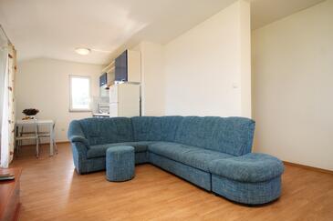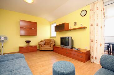 Ferienwohnung bietet Platz für 4 Gäste. Die Betten sind in Schlafzimmern, die es 2 gibt, innerhalb einer Gesamtfläche von 49m2, angeordnet. Die Gäste haben eine eigene Terrasse zur Verfügung, auf der sie in warmen Sommernächten genießen können. Das Apartment bietet Meerblick. Es ist erlaubt, Speisen auf dem Gemeinschafts-Grill vorzubereiten.