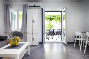 Ferienwohnung bietet Platz für 2 Gäste. Die Betten sind in Schlafzimmern, die es 1 gibt, innerhalb einer Gesamtfläche von 38m2, angeordnet. Die Gäste haben eine eigene Terrasse zur Verfügung, auf der sie in warmen Sommernächten genießen können.