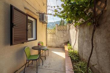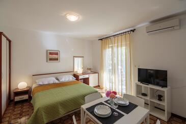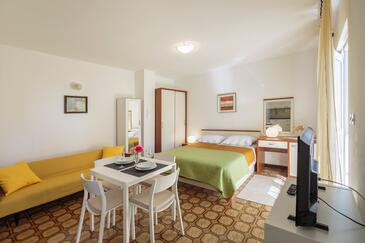 Ferienwohnung bietet Platz für 2 Gäste. Die Betten sind in Schlafzimmern, die es 1 gibt, innerhalb einer Gesamtfläche von 32m2, angeordnet. Die Gäste haben eine eigene Terrasse zur Verfügung, auf der sie in warmen Sommernächten genießen können. Das Apartment bietet Meerblick. Es ist erlaubt, Speisen auf dem Gemeinschafts-Grill vorzubereiten. Durch die Terrasse der gebuchten Unterkunftseinheit gehen auch andere Gäste oder Vermieter.