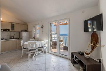Ferienwohnung bietet Platz für 3 Gäste. Die Betten sind in Schlafzimmern, die es 1 gibt, und in Wohnzimmer, innerhalb einer Gesamtfläche von 30m2, angeordnet. Die Gäste haben eine eigene Terrasse zur Verfügung, auf der sie in warmen Sommernächten genießen können. Das Apartment bietet Meerblick. In der Unterkunftseinheit besteht die Möglichkeit des Mitbringens von Haustieren, und die Dienstleistung ist im Preis der Unterkunft enthalten.