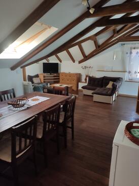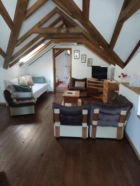 Ferienwohnung bietet Platz für 6 Gäste. Die Betten sind in Schlafzimmern, die es 3 gibt, innerhalb einer Gesamtfläche von 70m2, angeordnet. Die Gäste haben eine eigene Terrasse zur Verfügung, auf der sie in warmen Sommernächten genießen können. Es ist erlaubt, Speisen auf dem Gemeinschafts-Grill vorzubereiten. In der Unterkunftseinheit besteht die Möglichkeit des Mitbringens von Haustieren, und die Dienstleistung ist im Preis der Unterkunft enthalten.