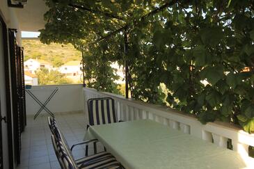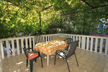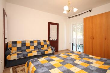 Ferienwohnung bietet Platz für 5 Gäste. Die Betten sind in Schlafzimmern, die es 2 gibt, und in Wohnzimmer, innerhalb einer Gesamtfläche von 61m2, angeordnet. Die Gäste haben eine eigene Terrasse zur Verfügung, auf der sie in warmen Sommernächten genießen können. Das Apartment bietet Meerblick. Es ist erlaubt, Speisen auf dem Gemeinschafts-Grill vorzubereiten.