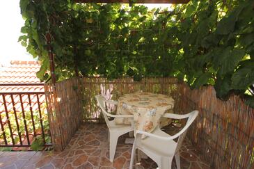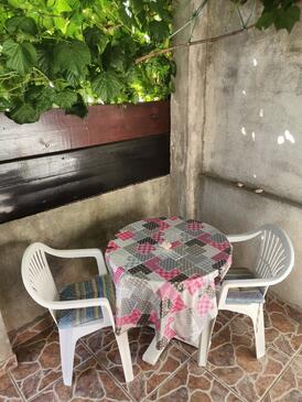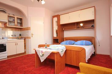 Studio bietet Platz für 2 Gäste. Die Betten sind in Schlafzimmern, die es 1 gibt, innerhalb einer Gesamtfläche von 23m2, angeordnet. Die Gäste haben eine eigene Terrasse zur Verfügung, auf der sie in warmen Sommernächten genießen können.