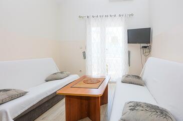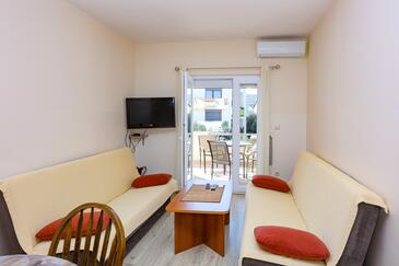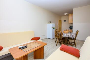 Ferienwohnung bietet Platz für 4 Gäste. Die Betten sind in Schlafzimmern, die es 1 gibt, und in Wohnzimmer, innerhalb einer Gesamtfläche von 42m2, angeordnet. Die Gäste haben einen eigenen Balkon zur Verfügung, auf der sie in warmen Sommernächten genießen können. Es ist erlaubt, Speisen auf dem Gemeinschafts-Grill vorzubereiten. In der Unterkunftseinheit besteht die Möglichkeit des Mitbringens von Haustieren, und die Dienstleistung ist im Preis der Unterkunft enthalten.