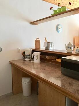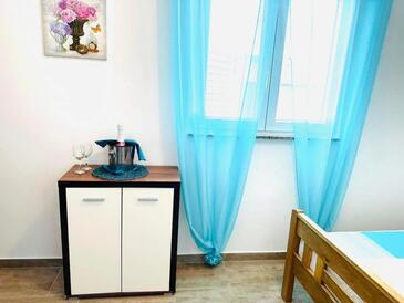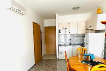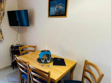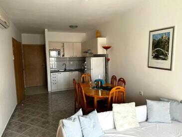 Ferienwohnung bietet Platz für 4 Gäste. Die Betten sind in Schlafzimmern, die es 2 gibt, innerhalb einer Gesamtfläche von 52m2, angeordnet. Die Gäste haben eine eigene Terrasse zur Verfügung, auf der sie in warmen Sommernächten genießen können. Es ist erlaubt, Speisen auf dem Gemeinschafts-Grill vorzubereiten.