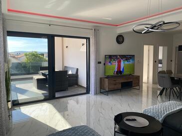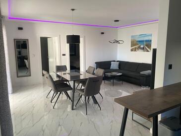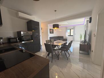 Ferienwohnung bietet Platz für 4 Gäste. Die Betten sind in Schlafzimmern, die es 2 gibt, innerhalb einer Gesamtfläche von 56m2, angeordnet. Die Gäste haben eine eigene Terrasse zur Verfügung, auf der sie in warmen Sommernächten genießen können. Es ist erlaubt, Speisen auf dem Gemeinschafts-Grill vorzubereiten.