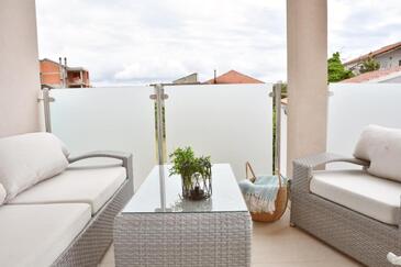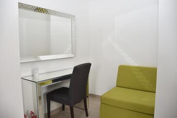 Ferienwohnung bietet Platz für 4 Gäste. Die Betten sind in Schlafzimmern, die es 2 gibt, innerhalb einer Gesamtfläche von 57m2, angeordnet. Die Gäste haben eine eigene Terrasse zur Verfügung, auf der sie in warmen Sommernächten genießen können. Es ist erlaubt, Speisen auf dem Gemeinschafts-Grill vorzubereiten.