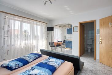 Ferienwohnung bietet Platz für 3 Gäste. Die Betten sind in Schlafzimmern, die es 1 gibt, und in Wohnzimmer, innerhalb einer Gesamtfläche von 26m2, angeordnet. Die Gäste haben einen eigenen Balkon zur Verfügung, auf der sie in warmen Sommernächten genießen können. Es ist erlaubt, Speisen auf dem Gemeinschafts-Grill vorzubereiten.