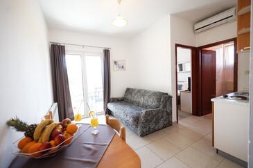 Ferienwohnung bietet Platz für 4 Gäste. Die Betten sind in Schlafzimmern, die es 1 gibt, und in Esszimmer, innerhalb einer Gesamtfläche von 30m2, angeordnet. Die Gäste haben einen eigenen Balkon zur Verfügung, auf der sie in warmen Sommernächten genießen können. Es ist erlaubt, Speisen auf dem Gemeinschafts-Grill vorzubereiten. In der Unterkunftseinheit besteht die Möglichkeit des Mitbringens von Haustieren gegen Aufpreis.