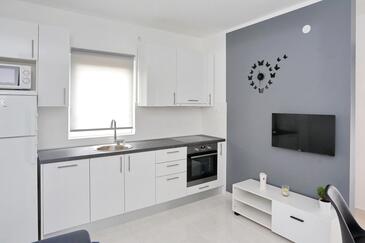 Ferienwohnung bietet Platz für 5 Gäste. Die Betten sind in Schlafzimmern, die es 2 gibt, und in Wohnzimmer, innerhalb einer Gesamtfläche von 55m2, angeordnet. Die Gäste haben eine eigene Terrasse zur Verfügung, auf der sie in warmen Sommernächten genießen können. Es ist erlaubt, Speisen auf dem Gemeinschafts-Grill vorzubereiten. In der Unterkunftseinheit besteht die Möglichkeit des Mitbringens von Haustieren, und die Dienstleistung ist im Preis der Unterkunft enthalten.
