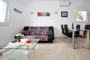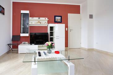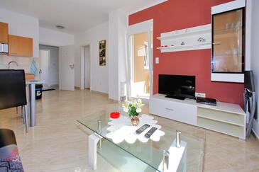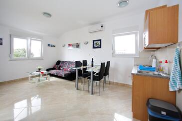 Ferienwohnung bietet Platz für 4 Gäste. Die Betten sind in Schlafzimmern, die es 1 gibt, und in Wohnzimmer, innerhalb einer Gesamtfläche von 44m2, angeordnet. Die Gäste haben eine eigene Terrasse zur Verfügung, auf der sie in warmen Sommernächten genießen können. Das Apartment bietet Meerblick. Für vollen Genuss und Entspannung gibt es einen privaten Grill für Gäste dieser Unterkunft.