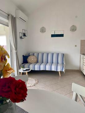 Ferienwohnung bietet Platz für 4 Gäste. Die Betten sind in Schlafzimmern, die es 1 gibt, und in Wohnzimmer, innerhalb einer Gesamtfläche von 52m2, angeordnet. Die Gäste haben eine eigene Terrasse zur Verfügung, auf der sie in warmen Sommernächten genießen können. Das Apartment bietet Meerblick. Es ist erlaubt, Speisen auf dem Gemeinschafts-Grill vorzubereiten.