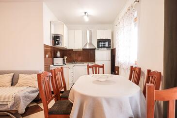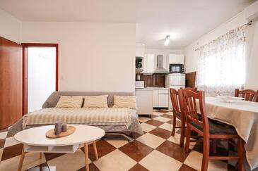 Ferienwohnung bietet Platz für 6 Gäste. Die Betten sind in Schlafzimmern, die es 2 gibt, und in Wohnzimmer, innerhalb einer Gesamtfläche von 47m2, angeordnet. Die Gäste haben eine eigene Terrasse zur Verfügung, auf der sie in warmen Sommernächten genießen können. Das Apartment bietet Meerblick. Es ist erlaubt, Speisen auf dem Gemeinschafts-Grill vorzubereiten. In der Unterkunftseinheit besteht die Möglichkeit des Mitbringens von Haustieren, und die Dienstleistung ist im Preis der Unterkunft enthalten.