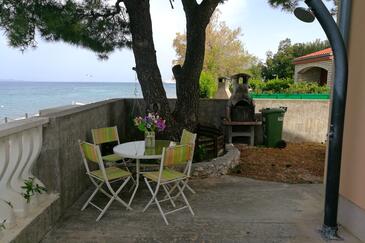 Ferienwohnung bietet Platz für 5 Gäste. Die Betten sind in Schlafzimmern, die es 2 gibt, und in Wohnzimmer, innerhalb einer Gesamtfläche von 43m2, angeordnet. Die Gäste haben eine eigene Terrasse zur Verfügung, auf der sie in warmen Sommernächten genießen können. Das Apartment bietet Meerblick. Es ist erlaubt, Speisen auf dem Gemeinschafts-Grill vorzubereiten.
