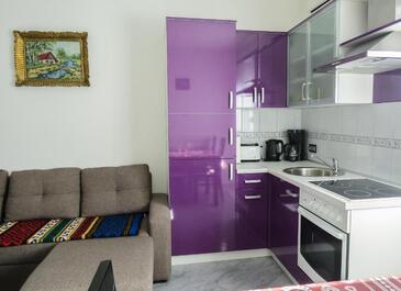 Ferienwohnung bietet Platz für 4 Gäste. Die Betten sind in Schlafzimmern, die es 1 gibt, und in Wohnzimmer, innerhalb einer Gesamtfläche von 34m2, angeordnet. Die Gäste haben eine eigene Terrasse zur Verfügung, auf der sie in warmen Sommernächten genießen können. Es ist erlaubt, Speisen auf dem Gemeinschafts-Grill vorzubereiten.