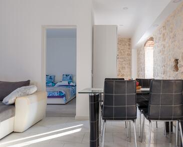 Ferienwohnung bietet Platz für 4 Gäste. Die Betten sind in Schlafzimmern, die es 2 gibt, innerhalb einer Gesamtfläche von 65m2, angeordnet. Die Gäste haben eine eigene Terrasse zur Verfügung, auf der sie in warmen Sommernächten genießen können.